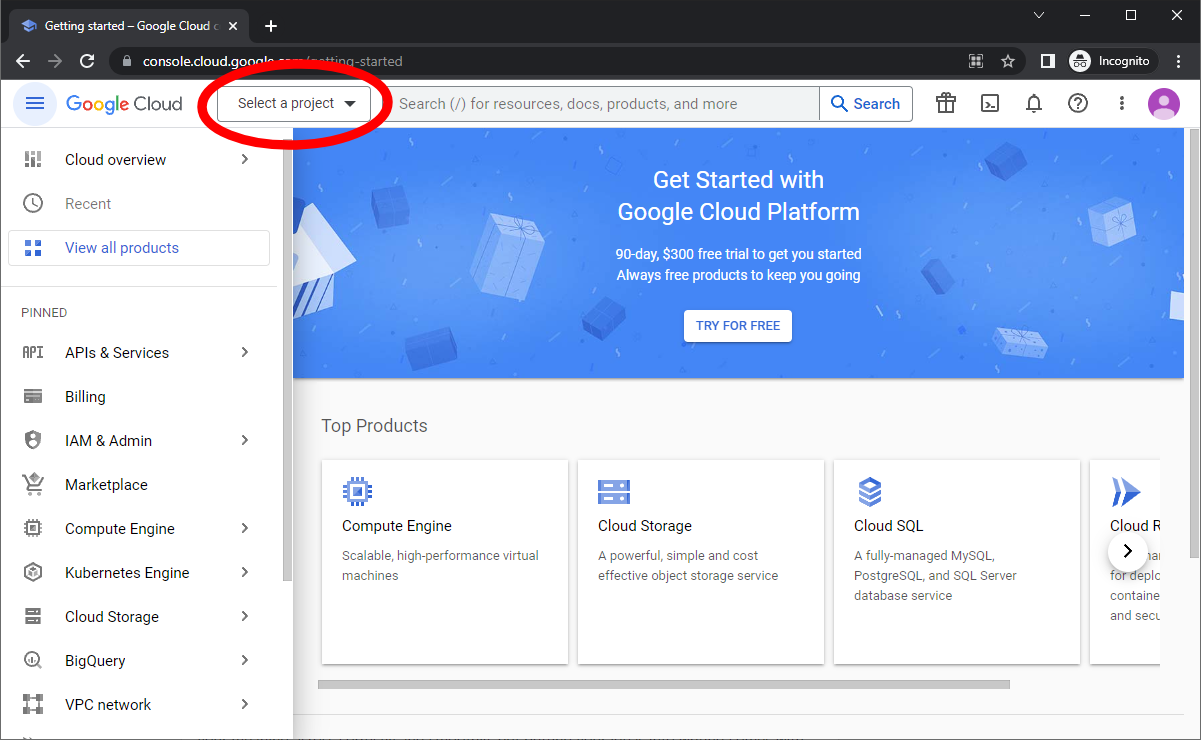- Click console.cloud.google.com/ and follow the registration steps.