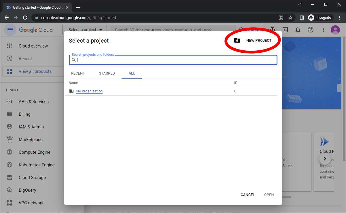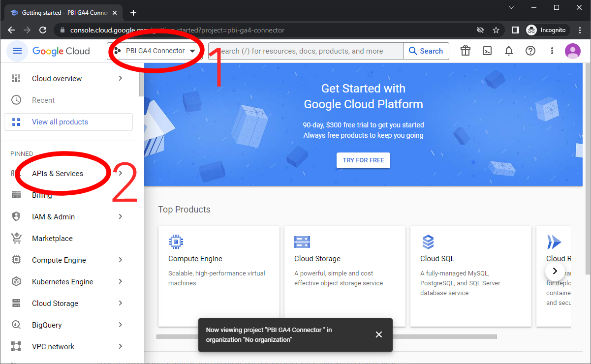 Step 1 – Setup a Project For Our Connector in Google Cloud