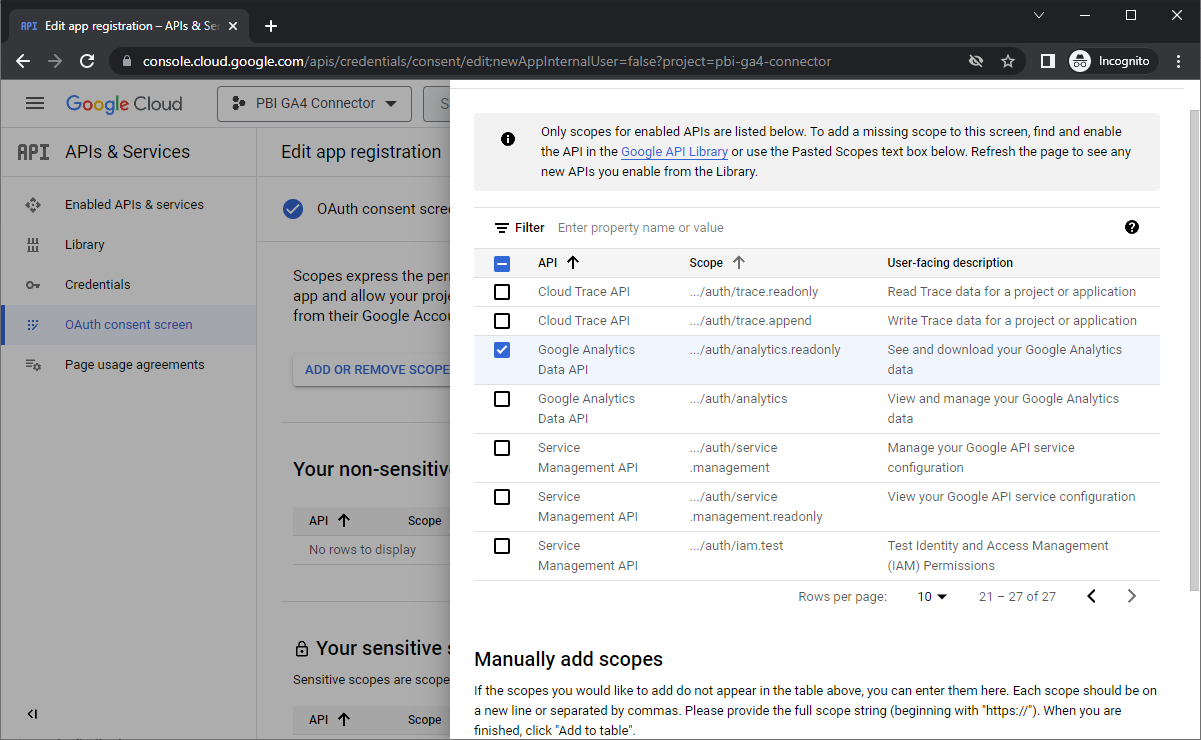 - Click ‘Add or Remove Scopes’.