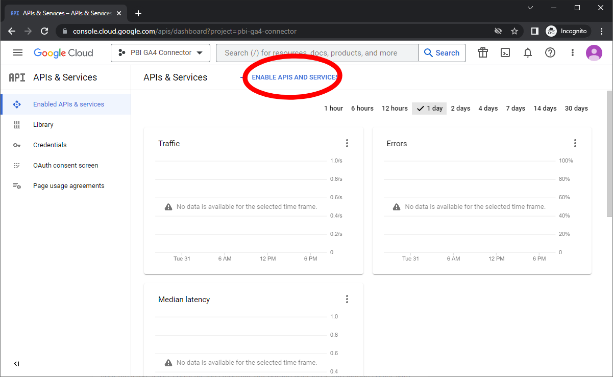 Step 2 – Allow That Project Access to The Google Data API
