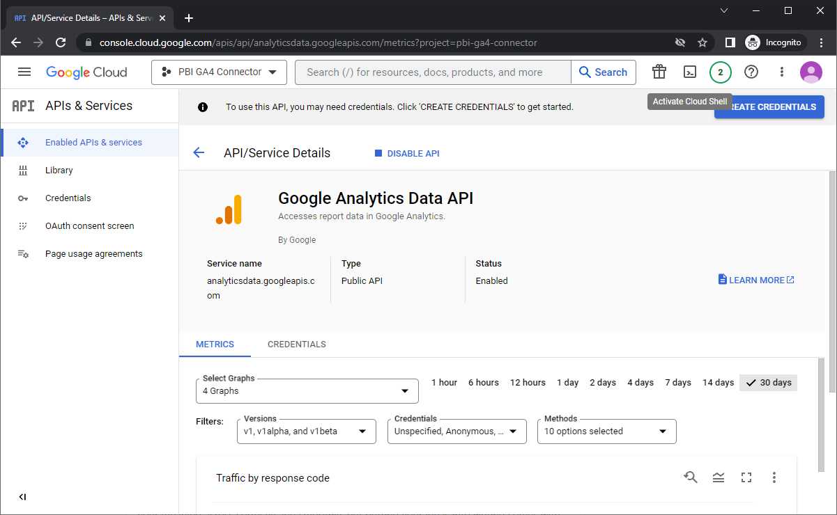 - There are a few analytics APIs so make sure you get this one specifically. The others are for UA.